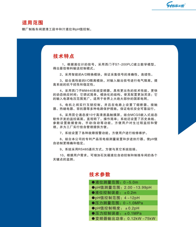 澄清車間中和汁液位和pH值自控系統(tǒng)
